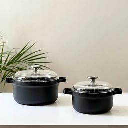 ظروف با جنس آلومینیوم ریخته گری برگهوف بهترین انتخاب برای آشپزخانه شماست. همه غذاهای های مورد علاقه خود را در این ظرف جادار با ظرفیتها متنوع بپزید. دارای بسیاری از ویژگی های هوشمندانه مانند جای قاشق روی درب شیشه ای است
