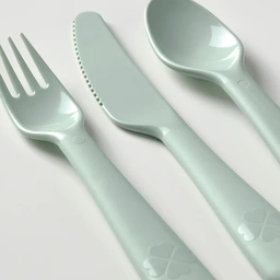 ایکیا یکی از تولیدکنندگان لوازم خانگی با توجه به این نیاز، ایدهی جالبی ارائه کرده است؛ استفاده از هجده قاشق، چنگال و کارد غذاخوری در شش رنگ متنوع، ست قاشق چنگال و چاقوی ایکیا مدل Kalas در یک بستهی هجدهعددی و به وزن 240 گرم عرضه میشود.