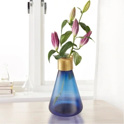 گلدان ابی رنگ شیشه ای به گل های شما زیبایی بیشتری میدهد